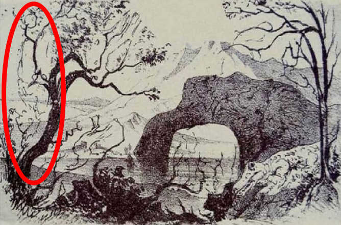 Ο κρυμμένος άνθρωπος μπορεί να φανεί ως περίγραμμα που ακουμπάει σε ένα δέντρο στην αριστερή πλευρά της εικόνας. Φαίνεται σαν να καπνίζει πίπα.